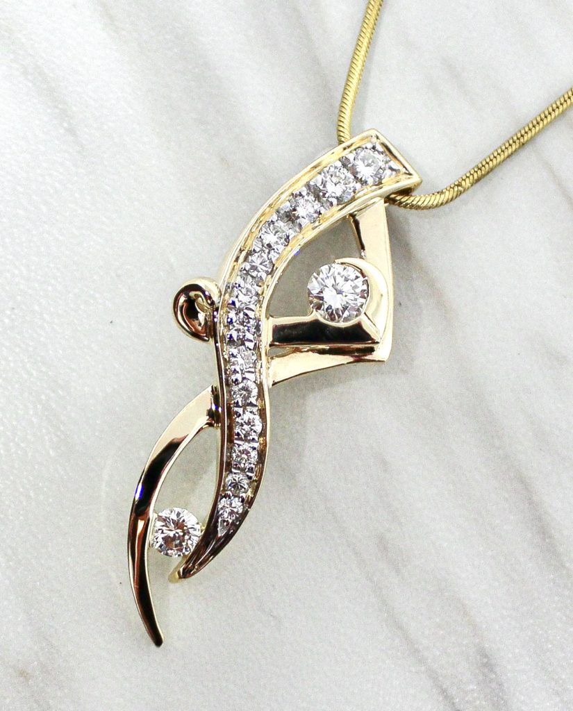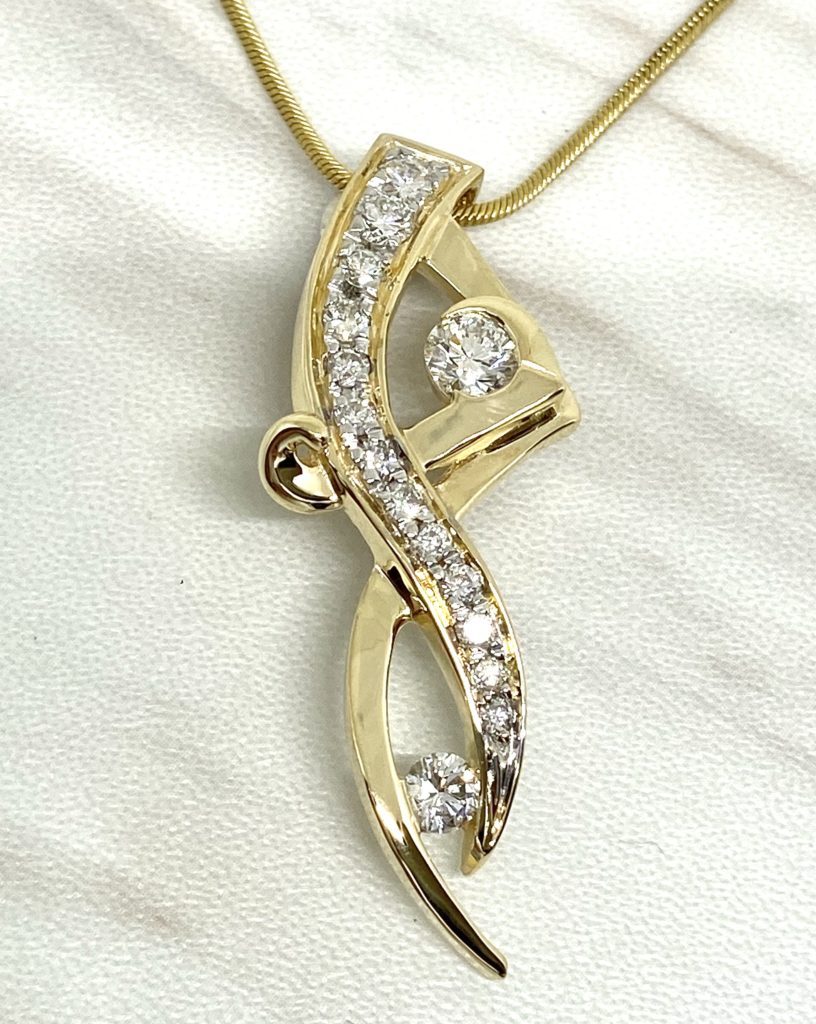 May 25, 2023 Custom & Personalized Jewelry, Diamond Jewelry, Featured jewelry, Gold Jewelry, Necklaces, Pendants, Precious Stones, Statement Jewelry Modern Diamond Twist Custom restyling using customer’s diamond engagement rings, 14KY diamond pendant Diamond, Pendant About Me Michelle Harper Related Posts May 3, 2023 Ladies NSA Class Ring April 20, 2023 Pure Simplicity October 2, 2023 One of a kind May 3, 2023 Ladies NSA Class Ring