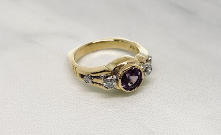 18ky Rosy Pink Sapphire and Diamond Ring, Euro shank