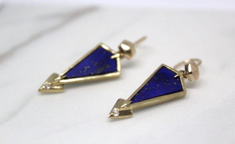 18Y hand fabricated Lapis and Diamond dangle earrings